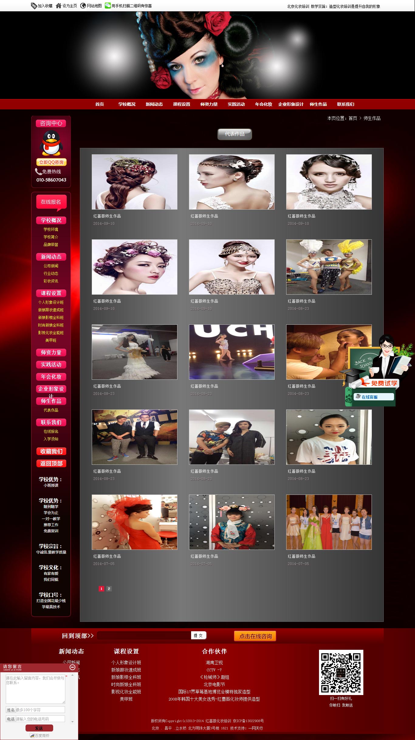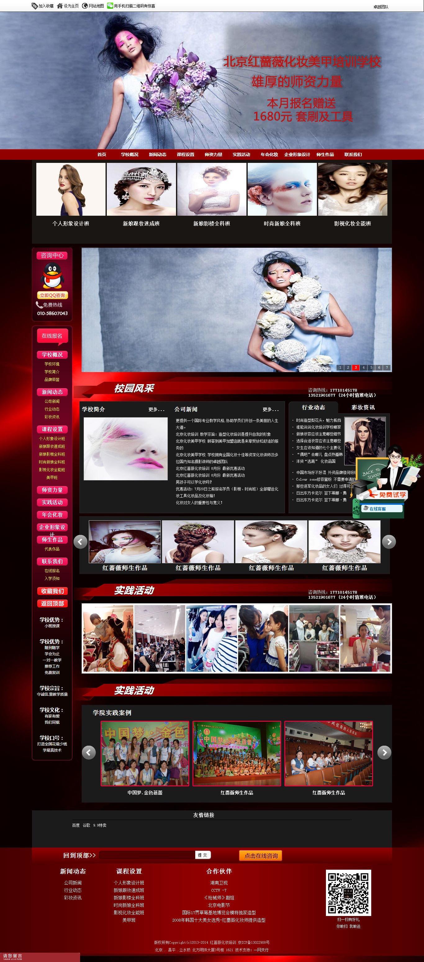 北京紅薔薇化妝培訓機構位于北五環(huán)昌平立水橋天通苑繁華地帶緊挨著朝陽區(qū)——是于2008年精心創(chuàng)建,是北京最新一流的時尚化妝造型機構。