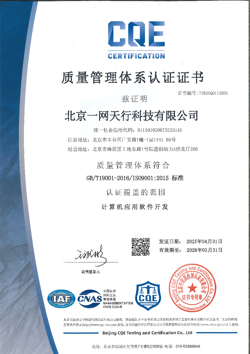 近期,我司北京一網(wǎng)天行科技有限公司順利通過IOS9001質(zhì)量管理體系認(rèn)證,成功獲得《IOS9001質(zhì)量管理體系認(rèn)證證書》。這標(biāo)志著我司質(zhì)量管理體系在標(biāo)準(zhǔn)化、規(guī)范化、程序化方面邁上新臺階,為公司的長遠(yuǎn)穩(wěn)步發(fā)展奠定了堅(jiān)實(shí)基礎(chǔ)。