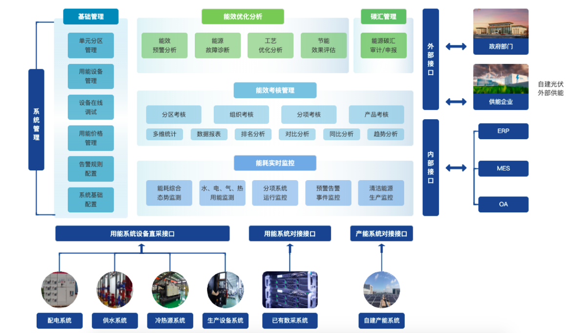 2、工作原理:通過(guò)傳感器和監(jiān)控設(shè)備對(duì)各種能源設(shè)備進(jìn)行數(shù)據(jù)采集和監(jiān)控,包括溫度、壓力、流量等參數(shù)。這些數(shù)據(jù)被傳輸?shù)较到y(tǒng)的控制中心,經(jīng)過(guò)分析和處理后,系統(tǒng)根據(jù)預(yù)設(shè)的優(yōu)化算法和運(yùn)行策略,自動(dòng)或半自動(dòng)地調(diào)整能源設(shè)備的運(yùn)行狀態(tài),實(shí)現(xiàn)能源的合理分配和高效利用。